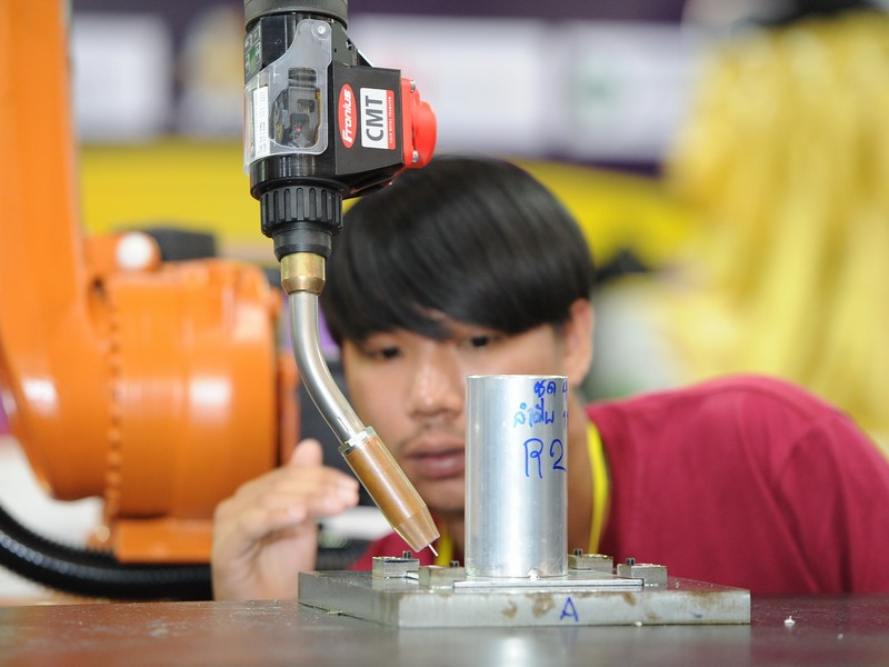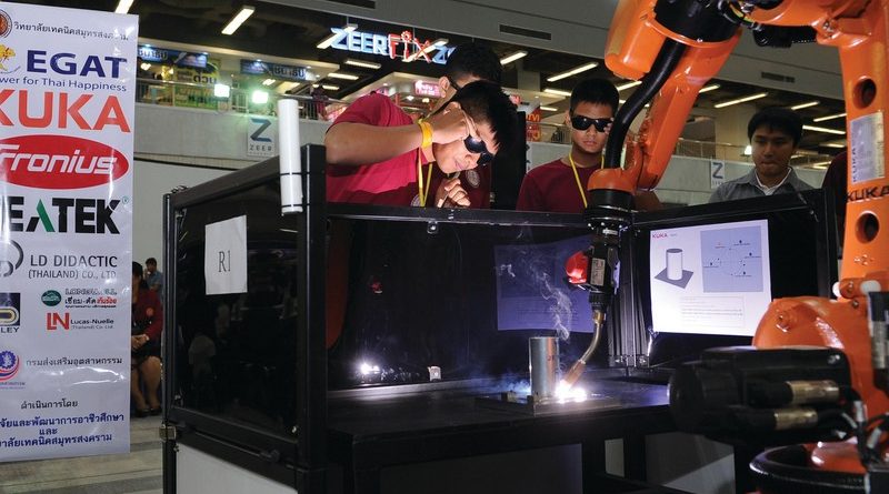 โดยในเบื้องต้น กรมส่งเสริมอุตสาหกรรม มุ่งเน้นการสนับสนุนและพัฒนาบุคลากรในภาคอุตสาหกรรมซึ่งเป็นฟันเฟืองสำคัญในการเพิ่มประสิทธิภาพในกระบวนการผลิตในระดับต้นน้ำ ให้รับรู้และเข้าถึงการใช้งานหุ่นยนต์แขนกลและระบบอัตโนมัติ โดยได้ร่วมสนับสนุนกิจกรรมการแข่งขัน “มหกรรมหุ่นยนต์อาชีวศึกษา ระดับชาติ 2561” ประเภทหุ่นยนต์แขนกลอุตสาหกรรม เพื่อส่งเสริมให้เกิดการรับรู้ในวงกว้างถึงความสามารถของบุคลากรไทยที่มีศักยภาพและมีความพร้อมในการรองรับเทคโนโลยีหุ่นยนต์และระบบอัตโนมัติ ตั้งแต่ระดับเยาวชน โดยทีมที่ชนะการแข่งขันหุ่นยนต์แขนกลอุตสาหกรรมในครั้งนี้ ได้แก่ ทีมไดโน โรบอท วิทยาลัยเทคนิคกาฬสินธุ์ ซึ่งใช้เวลาในการเชื่อมเหล็กด้วยหุ่นยนต์แขนกลเพียง 18 นาที ทั้งนี้การแข่งขันหุ่นยนต์แขนกลอุตสาหกรรมที่กรมส่งเสริมอุตสาหกรรมให้การสนับสนุนนั้น แสดงให้เห็นตัวอย่างหนึ่งของความสามารถของเทคโนโลยีแขนกลในการเชื่อมเหล็ก ซึ่งให้ผลลัพธ์ที่มีความเสถียรและมีประสิทธิภาพในเวลาอันรวดเร็ว ต่างจากการใช้แรงงานแบบดั้งเดิม แต่เทคโนโลยีแขนกลและระบบอัตโนมัติยังสามารถนำไปประยุกต์เข้ากับอีกหลายกระบวนการผลิตเพื่อเพิ่มขีดความสามารถในการแข่งขันให้กับธุรกิจของผู้ประกอบการที่ต้องการเพิ่มกำลังการผลิตสำหรับการแข่งขันในตลาดที่ใหญ่ขึ้น