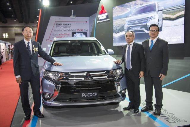 โดยในปีนี้ มิตซูบิชิ มอเตอร์ส ประเทศไทย ได้จัดแสดง “มิตซูบิชิ เอาท์แลนเดอร์ พีเอชอีวี” รถอเนกประสงค์ขับเคลื่อน 4 ล้อพลังงานไฟฟ้าปลั๊กอิน ไฮบริด (PHEV) รุ่นแรกของโลกที่สามารถขับเคลื่อนด้วยโหมดพลังงานไฟฟ้า 100% โดยสามารถเดินทางได้เป็นระยะ 52 กิโลเมตรต่อการชาร์จหนึ่งครั้ง และเดินทางได้ไกลสูงสุดถึง 870 กิโลเมตรเมื่อผสานกับการขับเคลื่อนด้วยโหมดปลั๊กอินไฮบริด นอกไปจากดีไซน์อันโฉบเฉี่ยวล้ำสมัย พร้อมเทคโนโลยีการขับเคลื่อนสี่ล้อสมรรถนะสูงที่พร้อมลุยไปในทุกสภาพเส้นทางแล้ว มิตซูบิชิ เอาท์แลนเดอร์ พีเอชอีวี ยังโดดเด่นด้วยประสิทธิภาพการบริโภคเชื้อเพลิงด้วยอัตรา 1.8 ลิตรต่อ 100 กิโลเมตร แต่มีอัตราการปล่อยก๊าซคาร์บอนไดออกไซด์ต่ำเพียง 40 กรัมต่อกิโลเมตรเท่านั้น