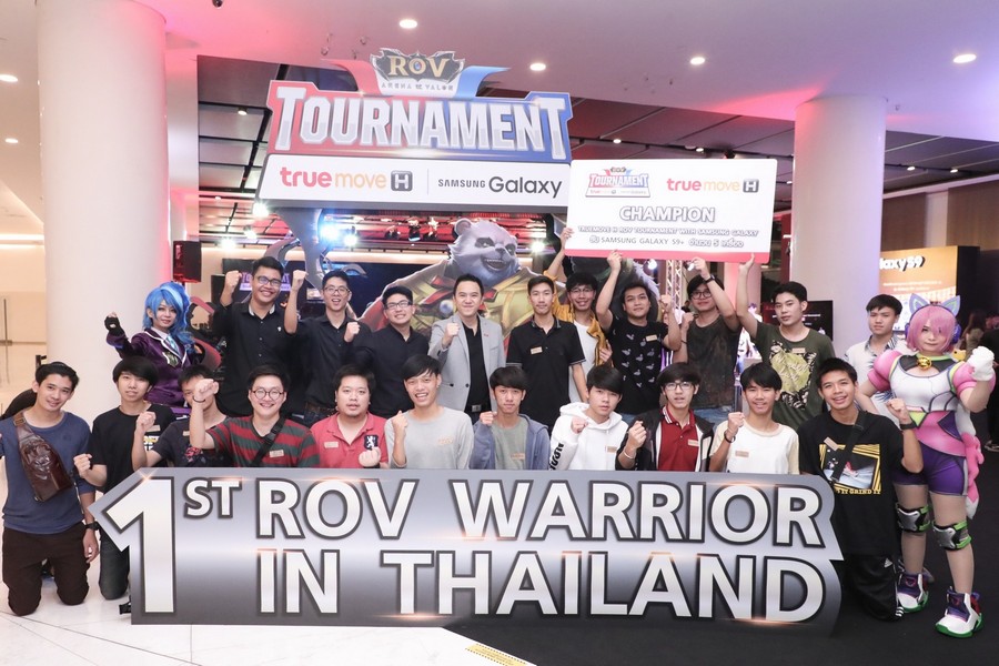 ทรูมูฟ เอช เครือข่าย 4G ยอดเยี่ยมในเอเชียแปซิฟิก นำโดย นายสกลพร หาญชาญเลิศ (แถวยืนที่ 5 จากซ้าย) รักษาการผู้อำนวยการ ธุรกิจโมบายล์ สายงานโมบายล์ พรีเพย์และนอน-วอยซ์ บริษัท ทรู คอร์ปอเรชั่น จำกัด (มหาชน) มอบรางวัล 1st ROV Warrior in Thailand แก่เยาวชนไทยผู้ชนะในเวที TrueMove H ROV Tournament กรุงเทพฯ ซึ่งทรูมูฟ เอชได้จัดการแข่งขันใน 10 จังหวัดทั่วประเทศ เพื่อเปิดโอกาสให้เยาวชนไทยได้