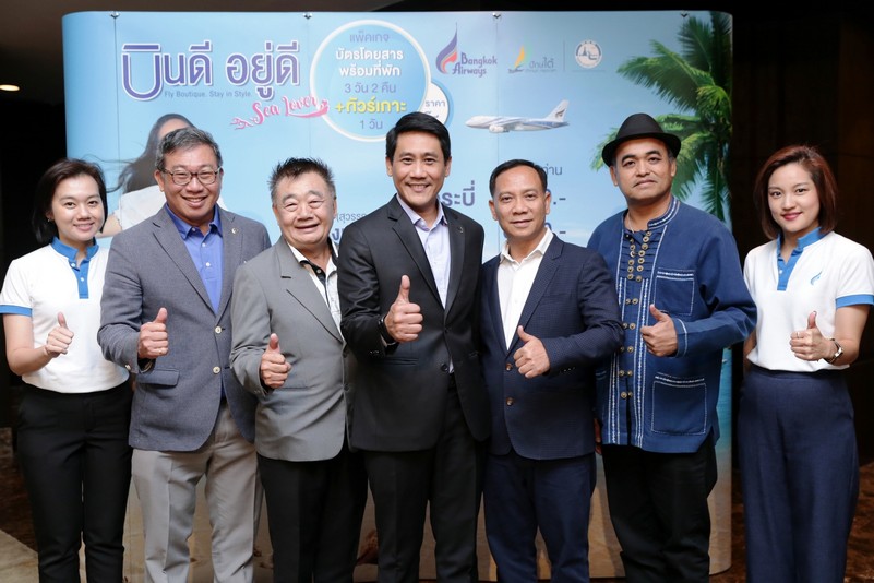 บริษัท การบินกรุงเทพ จำกัด (มหาชน) หรือ สายการบินบางกอกแอร์เวย์ส โดยนายต่อตระกูล สมากุล ผู้อำนวยการส่วนขายประจำประเทศไทย (กลาง) ร่วมกับ การท่องเที่ยวแห่งประเทศไทย โดยนายวิบูลย์ นิมิตรวานิช ผู้อำนวยการภูมิภาคตะวันออก (ที่ 2 จากซ้าย) และบริษัทศรีสวัสดิ์ ทราเวล แอนด์ ทัวร์ โดยนายชำนาญ ศรีสวัสดิ์ ประธานกรรมการ (ที่ 3 จากขวา) ร่วมกันเปิดตัวโครงการ “บินดี อยู่ดี Sea Lover 2018” โดยมีนายภูริวัจน์ ลิ้มถาวรรัตน์ นายกสมาคมธุรกิจท่องเที่ยวภายในประเทศ (ที่ 2 จากขวา) และนายชัยรัตน์ ไตรรัตนจรัสพร ประธานสมาพันธ์ธุรกิจการท่องเที่ยวส่วนภูมิภาคแห่งประเทศไทย (ที่ 3 จากซ้าย) ให้เกียรติเข้าร่วมงาน ณ ห้องบอลรูม โรงแรมโซฟิเทล สุขุมวิท