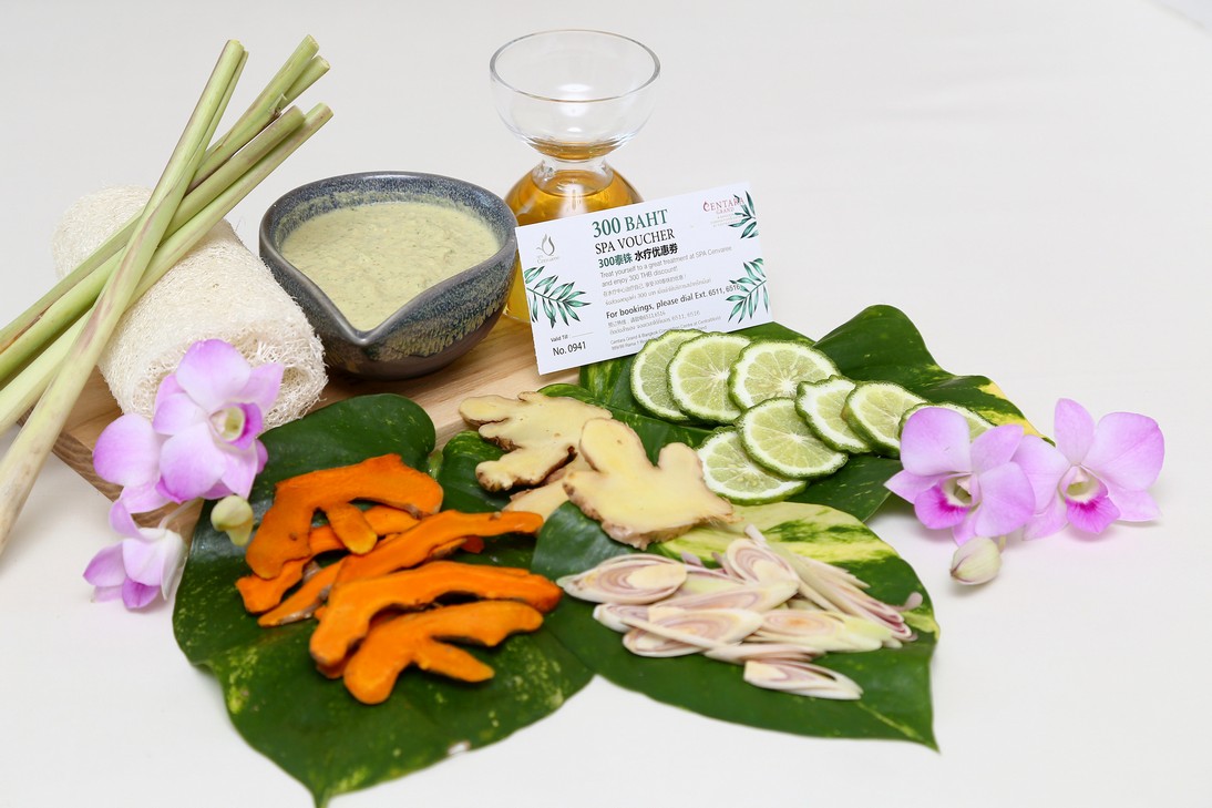 มอบประสบการณ์สปาแบบไทย ๆ ในช่วงเวลาแห่งการผ่อนคลายอย่างแท้จริง ไปพร้อม ๆ กับการบำรุงผิวสวย ควบคู่ไปกับการขจัดสารพิษและสิ่งตกค้าง พร้อมมอบความสดชื่นให้กับผิว ด้วยสมุนไพรไทยที่มีกลิ่นหอมสดชื่นและเต็มเปี่ยมไปด้วยสรรพคุณทางยามากมาย อาทิ มะกรูด ตะไคร้ ขิง และไพล เริ่มต้นด้วยการชำระล้างเท้าด้วยสมุนไพรให้สะอาด จากนั้นขัดผิวด้วยสมุนไพรไทยและใยบวบจากธรรมชาติ ต่อด้วยนวดผ่อนคลายแบบอโรมา เพื่อคืนความกระปรี้กระเปร่าตั้งแต่ศีรษะจรดปลายเท้าเป็นการปิดท้ายทรีทเม้นท์ พร้อมเสิร์ฟเซ็ตชาสมุนไพรร้อน และผลไม้ เพื่อคืนความสดชื่นให้กับร่างกายอีกครั้ง หลังจากที่เพลิดเพลินไปกับการนวดปรนนิบัติผิว