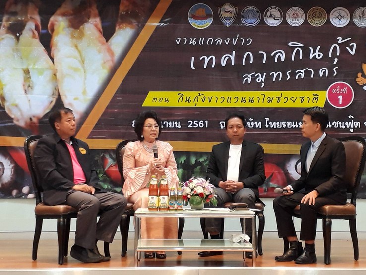 นายธีรพัฒน์ คัชมาตย์ รองผู้ว่าราชการจังหวัดสมุทรสาคร, นางอำไพ หาญไกรวิไลย์ ประธานหอการค้าสมุทรสาคร ร่วมแถลงข่าวสถานการณ์ราคากุ้งขาวแวนนาไมที่ตกต่ำทั่วประ เทศไทย ตั้งแต่เดือนเมษายน 2561 เป็นต้นมา เนื่องจากได้รับผลกระทบจากผลผลิตกุ้งโลกเพิ่มสูงขึ้นอย่างมากจนเกิดภาวะสินค้ากุ้งล้นตลาด (Over supply) ประกอบกับผู้ประกอบการในประเทศไทยมีคำสั่งซื้อลดลงจากประเทศผู้ค้าส่งผลให้เกษตรกรผู้เพาะเลี้ยงกุ้งของประเทศไทย ได้รับความเดือดร้อน ซึ่งที่ผ่านมากรมประมงร่วมกับภาคเอกชนที่เกี่ยวข้องได้ร่วมกันแก้ไขปัญหาดังกล่าว โดยการลดราคาลูกพันธุ์ อาหาร และปัจจัยการผลิต รวมถึงการจัดทำโครงการประชารัฐ รักษาเสถึยรภาพราคากุ้งขาวแวนนาไม ซึ่งกุ้งขาวแวนนาไมมีลำตัวขาว ขามีสีขาว หางสีแดง โดยเฉพาะปลายหางจะมีสีแดงเข้ม กุ้งขาวแวนนาไม หรือที่เรียกกันว่า ‘กุ้งขาว’ เป็นกุ้งที่เลี้ยงง่าย มีการเจริญเติบโตอย่างรวดเร็ว
