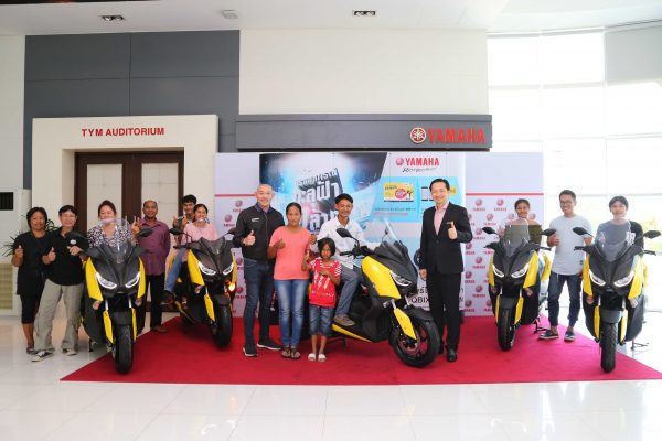 คุณพงศธร เอื้อมงคลชัย ผู้จัดการใหญ่ด้านการค้า พร้อมด้วยผู้บริหารระดับสูง บริษัท ไทยยามาฮ่ามอเตอร์ จำกัด ทำการมอบรถจักรยานยนต์ยามาฮ่า XMAX 300 ให้กับผู้โชคดีทั้ง 5 ท่าน ผ่านแคมเปญ “ปรากฏการณ์ทะลุฟ้า 50 ล้าน” ซื้อปุ๊ป ได้ปั๊ป ทั้งรับ ทั้งลุ้น! เมื่อซื้อรถจักรยานยนต์ยามาฮ่า คิวบิ๊กซ์, ยามาฮ่า ฟินน์ หรือ ยามาฮ่า เอ็ม-สแลซ ระหว่างวันที่ 28 มี.ค. 61 – 31 พ.ค. 61 ที่ผ่านมา พร้อมรับโปรโมชั่นสุดพิเศษมากมาย รวมมูลค่า 50 ล้านบาท และยังมีสิทธิลุ้นรับ ยามาฮ่า XMAX 300 จำนวน 10 คัน คันละ 168,000 บาท ซึ่งการมอบรางวัลในครั้งที่ 2 นี้ ได้มอบยามาฮ่า XMAX 300 ให้กับผู้โชคดีจำนวน 5 คัน โดยการมอบรางวัลในครั้งนี้มีขึ้น ณ สถาบันฝึกอบรมขับขี่รถจักรยานยนต์ยามาฮ่า (YRA)