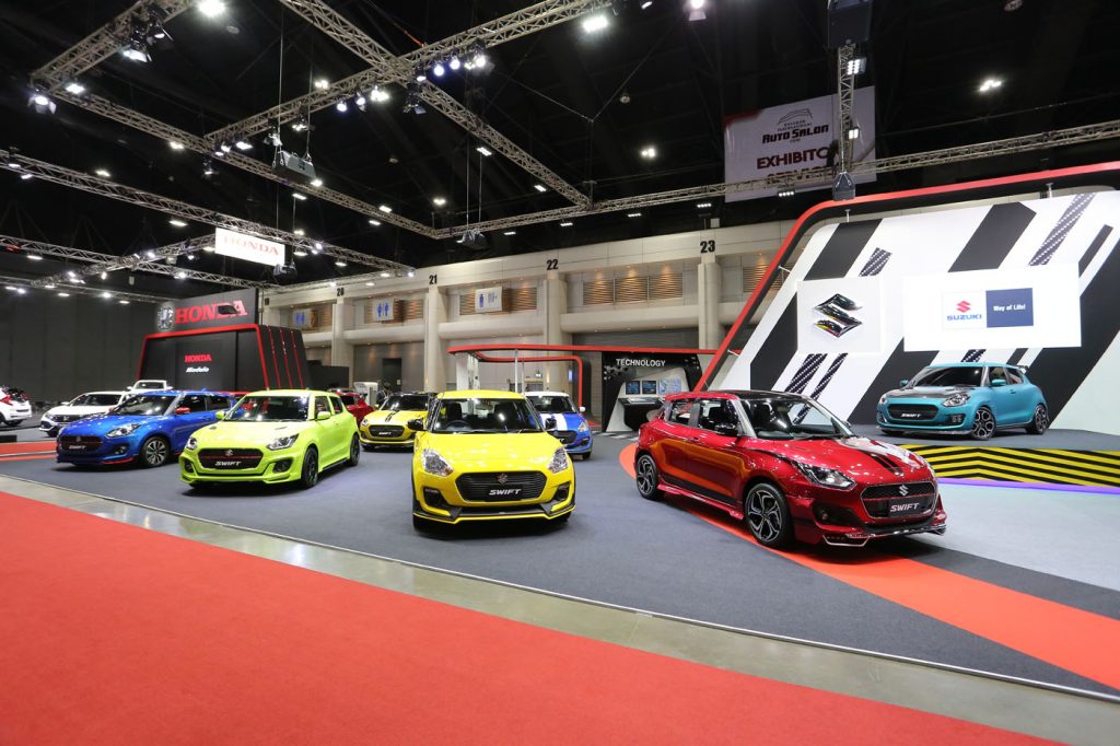 ส่วน “ซูซูกิ มอเตอร์” ซุ่มเงียบ จับเอา ซูซูกิ สวิฟท์ รุ่นใหม่ล่าสุดแต่งหลากไตล์เรียกความฮือฮา ให้ผู้เดินงานมากที่สุด ไม่ว่าจะเป็นการแต่งในแนวสปอร์ต, การแต่งแนววีไอพีหรือการแร็พด้วยสีเขียวพิเศษ ที่ไม่เคยมีมาก่อน ทำให้ตลอดทั้งวันของบูธซูซูกิ มีผู้สนใจอยากจับจองรถแล้วขอแต่งเป็นแบบเดียวกันเข้ามาแวะเวียนไม่ขาดสาย