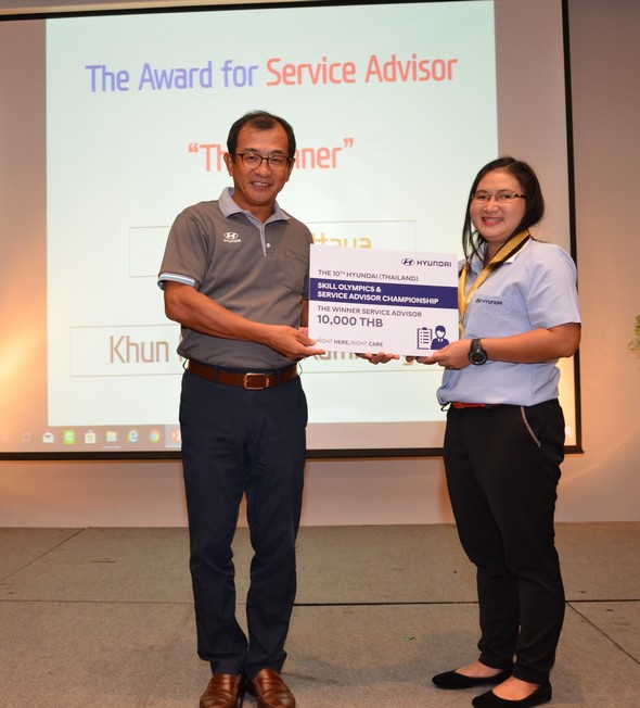 ผู้ชนะเลิศการแข่งขัน จะได้รับเกียรติเป็นตัวแทนจากประเทศไทยไปแข่งขันการวัดระดับทักษะความรู้ความสามารถพนักงานที่ปรึกษาด้านบริการ ของผู้แทนจำหน่ายรถยนต์ฮุนไดจากทั่วโลก ที่จัดขึ้นโดยบริษัท ฮุนได มอเตอร์ จำกัด ประเทศเกาหลี กับกิจกรรม “The 1st Hyundai Global CX ( Customer Experience) Championship”