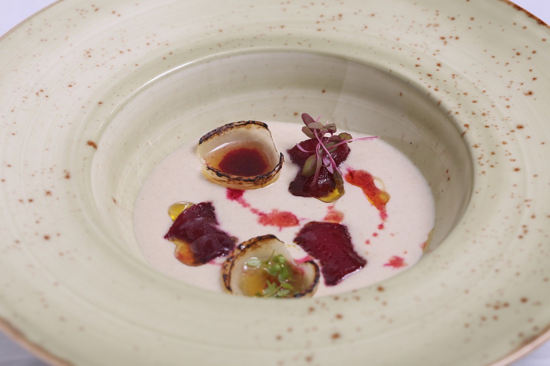 สถานที่ที่อุดมไปด้วยความสมบูรณ์ของธรรมชาติ แวดล้อมไปด้วย คาบสมุทรไอบีเรียมหาสมุทรแอตแลนติก และทะเลเมดิเตอร์เรเนียน ทำให้ได้วัตถุดิบในการปรุงอาหารที่สดใหม่ รสชาติดี เริ่มต้นด้วย ไข่ไก่ออแกนิคสอดไส้ด้วยเห็ดทรัฟเฟิลและเห็ดพอร์ชินีครีมข้น ตามด้วยเมนู ซุปมะเขือม่วงครีมข้น เสิร์ฟพร้อมปลาทูน่าและหอมย่าง ราดด้วยน้ำมันบีทรูท และปลาแซลมอนเทร้าสดรมควันด้วยกลิ่นถ่าน เสิร์ฟพร้อมชีสบูราตาสด และผักอองไดร์ ราดน้ำทับทิมเดรสซิ่งพร้อมซอสโฟมรสเปรี้ยว