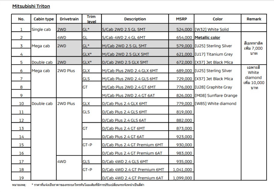 เปิดตัวครั้งแรกในโลก !!! มิตซูบิชิ ไทรทัน ใหม่ ในราคา 524,000-1,099,000 บาท