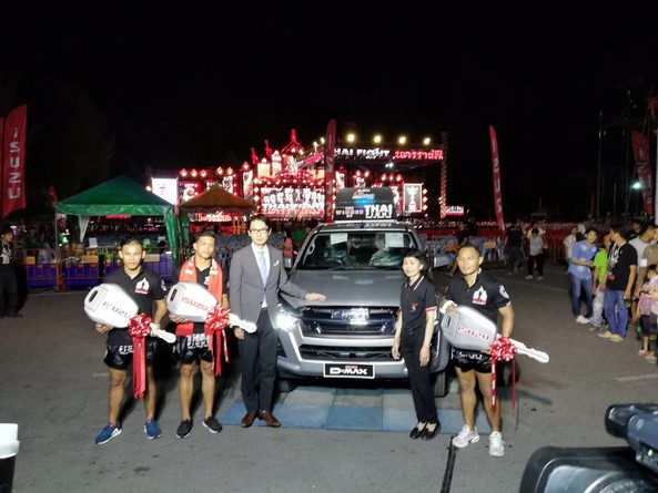 อีซูซุชื่นชม 3 นักชกไทย สะท้านฟ้า ศิษย์นายกชายสงขลา, พยัคฆ์สมุย ลูกเจ้าพ่อโรงต้ม และแสนชัย พี.เค.แสนชัยมวยไทยยิม แทคทีมคว้าแชมป์ครองถ้วยพระราชทานสมเด็จพระเจ้าอยู่หัว มหาวชิราลงกรณ บดินทรเทพยวรางกูร ในการแข่งขันมวยไทยระดับโลก “THAI FIGHT 2018” รอบชิงชนะเลิศ เป็นผลสำเร็จ พร้อมรับรางวัลชนะเลิศรถปิกอัพอีซูซุดีแมคซ์ ไฮแลนเดอร์ 2 ประตู 1.9 ดีดีไอ รุ่น Z เกียร์ธรรมดา และรางวัลเงินสด รวม 3 ล้านบาท