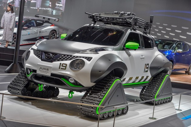 นิสสัน ขนกองทัพรถยนต์มาแบบจัดเต็ม ซึ่งมีการโชว์ทั้งเทคโนโลยีพลังงานสะอาด หรือ EV รวมไปถึงการนำรถแข่งไร้มลพิษจากรายการ ฟอร์มูล่า อี มาจัดแสดง ในส่วนของรถที่ใช้เครื่องยนต์สมรรถนะสูงก็ได้นำ GT-R (R35) มาจอดโชว์อย่างโดดเด่น และที่พลาดไม่ได้เลยในบูธก็คือ การแต่ง นิสสัน จู๊ค ให้เป็นจอมลุย โดยถอดล้อและยางออก แล้วใส่ล้อตีนตะขาบเข้าไปแทน ซึ่งรถคันนี้ได้รับรางวัลจากงาน โตเกียว ออโต้ ซาลอน ด้วย