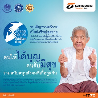 ธนชาต ร่วมเป็นช่องทางรับแจ้งบริจาคเบี้ยยังชีพผู้สูงอายุ กับโครงการ “เกื้อกูลผู้สูงวัย สังคมไทยน่าอยู่”