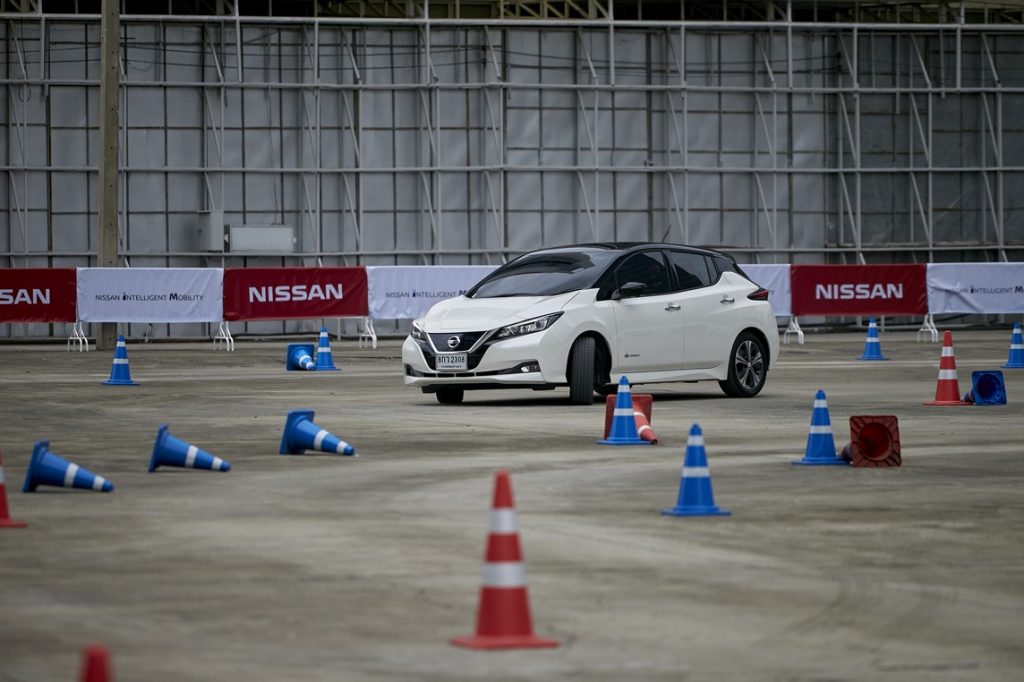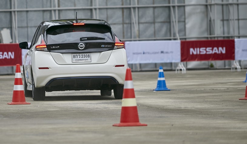 เริ่มสตาร์ท พร้อมทำความรู้จักกับ นิสสัน ลีฟ ณ ใจกลางเมือง จีแลนด์ พระราม 9 ภายใต้ธีมงานที่ชื่อว่า ‘rEVolution’ โดยภายในงานได้แบ่งโซนทดสอบออกเป็น 2 ส่วน เริ่มจากสถานีจำลองในการวิ่งเพื่อให้เห็นถึงประสิทธิภาพด้านอัตราเร่ง และการเบรกที่ตอบสนองได้ทันใจ ซึ่งนิสสัน ลีฟ สามารถทำออกมาได้ดี พร้อมทั้งพ่วงมาด้วยเทคโนโลยี e-Pedal ที่ใช้ควบคุมความเร็วรถทั้งการเร่ง และเบรก กล่าวคือเมื่อเราปล่อยคันเร่ง รถจะชะลอความเร็วโดยอัตโนมัติจนถึงการหยุดนิ่งได้โดยสมบูรณ์์ ซึ่งมีอัตราการชะลอความเร็วสูงถึง 0.2 G โดยที่ผู้ขับไม่ต้องขยับเท้าออกจากคันเร่งไปยังแป้นเบรก