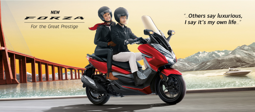 New Forza มาพร้อมกับ 4 สีสันใหม่สไตล์พรีเมี่ยมสปอร์ต ได้แก่ สีแดง-เทา, สีน้ำเงิน-เทา, สีขาว-น้ำเงิน และสีดำด้าน บนรูปทรงที่ปราดเปรียวโดดเด่น เพื่อให้ผู้ขับขี่ได้สัมผัสประสบการณ์ใหม่กับรูปลักษณ์แบบลักชัวรี่สปอร์ตเหนือระดับ ล้ำกว่าใครด้วยกระจกบังลมหน้าไฟฟ้าจากอิตาลี สามารถปรับระดับอัตโนมัติได้ถึง 110 มม. ช่วยลดแรงลมปะทะหน้าขณะขับขี่ ติดตั้งชุดไฟ LED รอบคัน พร้อม Day Time Running Light และกระจกมองข้างดีไซน์หรู พร้อมไฟเลี้ยวแบบ Built – in LED ล้ำสมัยด้วย รีโมทอัจฉริยะที่สั่งการครบทุกฟังก์ชั่น ทั้งการระบุตำแหน่งรถสัญญาณกันขโมย และเปิด-ปิดสัญญาณรีโมท พร้อมชุดควบคุมการทำงานอัจฉริยะสั่งงานง่ายเพียงปิดสวิทซ์