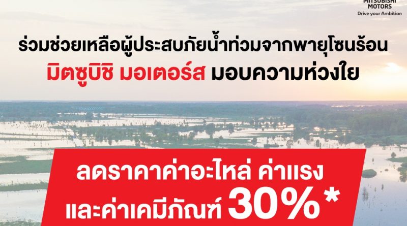มิตซูบิชิ มอบส่วนลด 30% ร่วมแบ่งเบาภาระลูกค้าผู้ประสบอุทกภัย
