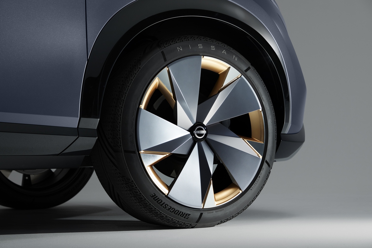 เส้นสายหลังคาและล้อของ อริยะ คอนเซ็ปต์ โดดเด่นด้วยสีเอกลักษณ์ใหม่สำหรับรถยนต์พลังงานไฟฟ้าของนิสสันในอนาคต นั่นคือสีทองแดง อันเป็นสีของดวงอาทิตย์ขณะกำลังฉายแสงผ่านความมืดเพื่อเริ่มต้นวันใหม่ เป็นสัญลักษณ์ถึงรุ่งอรุณยานยนต์ยุคใหม่ พร้อมแสดงความเคารพต่อศิลปินชาวญี่ปุ่นดั้งเดิม ซึ่งรังสรรค์ทองแดงไว้ในงานศิลปะที่มีประโยชน์ใช้สอย