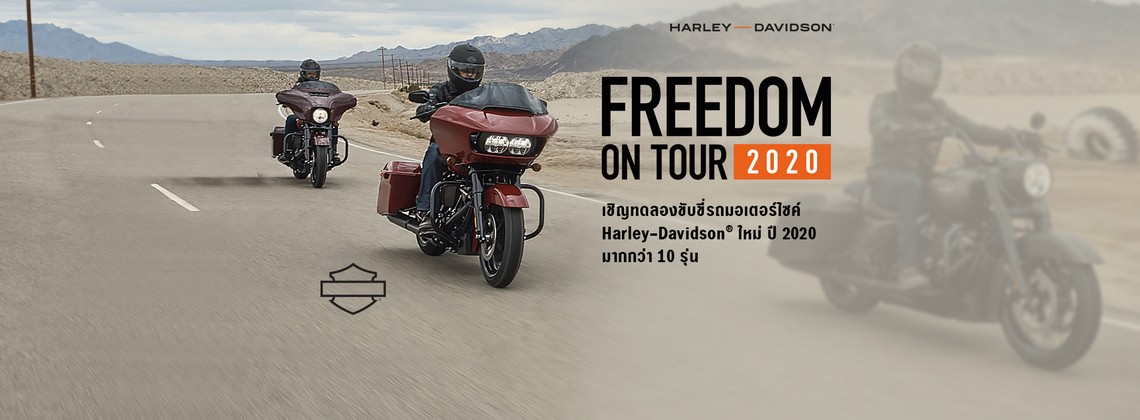 ผู้จำหน่ายฮาร์ลีย์-เดวิดสัน™ ในประเทศไทยทั้ง 9 ราย จะเข้าร่วมในกิจกรรม Freedom on Tour 2020 โดยขบวนโร้ดโชว์นี้จะจัดขึ้นในวันเสาร์และอาทิตย์ในแต่ละจังหวัดของผู้จำหน่าย นอกจากนี้ ยังมีกิจกรรมการทดลองขับขี่ Daily Ride ซึ่งจะจัดขึ้นในวันจันทร์-ศุกร์อีกด้วย