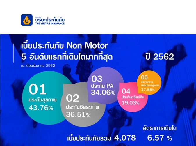 ส่วนทางด้านการรับประกันภัยที่ไม่ใช่รถยนต์ (Non-Motor) นายอมร กล่าวเพิ่มเติมว่า ด้วยความเป็นแบรนด์วิริยะประกันภัย ทำให้บริษัทฯ ได้รับความไว้วางใจ และเข้าถึงลูกค้าได้ง่าย ซึ่งเป็นผลมาจากการได้รับการยอมรับเรื่องบริการสินไหมทดแทน ซึ่งบริษัทได้บ่มเพาะประสบการณ์และความเชี่ยวชาญด้านประกันภัยรถยนต์มาอย่างยาวนาน ดังนั้นการขยายตลาดสู่ประกัน Non-Motor จึงเป็นเรื่องที่บริษัททำได้ค่อนข้างประสบความสำเร็จ วัดผลได้จากอัตราการเติบโตที่เพิ่มขึ้น โดยบริษัทฯ ยังคงยืนยันเป้าหมายการเพิ่มขึ้นของสัดส่วนงานประกันภัยที่ไม่ใช่รถยนต์ (Non-Motor) เป็น 20% ภายใน 5 ปี
