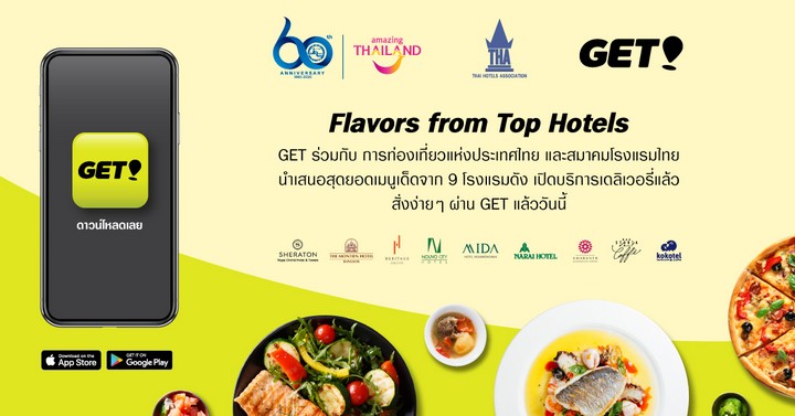 GET (เก็ท) ผู้ให้บริการแบบออนดีมานด์เพื่อไลฟสไตล์คนเมืองและแพลตฟอร์มฟู้ดเดลิเวอรี่ที่เติบโตเร็วที่สุดในกรุงเทพฯ จับมือกับการท่องเที่ยวแห่งประเทศไทย (ททท.) และสมาคมโรงแรมไทย เปิดตัวแคมเปญ “Flavors from Top Hotels” ในการสนับสนุนธุรกิจโรงแรมในกรุงเทพฯ ให้เข้ามาร่วมเป็นพาร์ทเนอร์กับ GET และสามารถให้บริการเดลิเวอรี่ ส่งอาหารจากร้านอาหารชั้นนำของโรงแรม พร้อมส่วนลดค่าคอมมิชชั่น เพื่อช่วยลดภาระและสร้างโอกาสในการเพิ่มรายได้ให้กับธุรกิจในภาวะเศรษฐกิจเช่นนี้