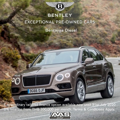 เบนท์ลีย์ แบงค็อก โดย บริษัท เอเอเอส ออโต้ เซอร์วิส ผู้แทนจัดจำหน่ายรถยนต์เบนท์ลีย์อย่างเป็นทางการแต่เพียงผู้เดียวในเมืองไทย เปิดตัวข้อเสนอสุดพิเศษแห่งปี สำหรับ Bentley Certified Pre-Owned กลุ่มรถยนต์เบนท์ลีย์มือสอง เอาใจเหล่าแฟนคลับเบนท์ลีย์ทั่วประเทศ ด้วยไฟแนนซ์แพคเกจ ดอกเบี้ย 0% เริ่มต้นผ่อนเพียงเดือนละ 200,000 บาทเท่านั้น นานสูงสุด 60 เดือน ถึงวันที่ 31 กรกฎาคม 2563
