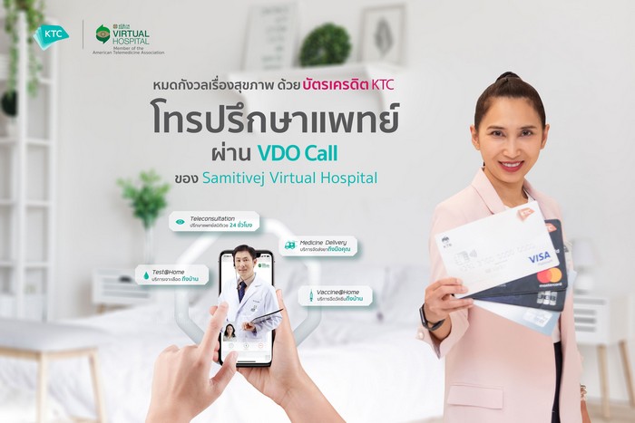 “เคทีซี” หรือ บริษัท บัตรกรุงไทย จำกัด (มหาชน) โดยนางสาวสิรีรัตน์ คอวนิช ผู้อำนวยการ ธุรกิจบัตรเครดิต มอบความอุ่นใจเรื่องสุขภาพระหว่างที่อยู่บ้านและความสะดวกสบาย ด้วย “Samitivej Virtual Hospital” บริการปรึกษาแพทย์ออนไลน์ผ่านวีดีโอคอลล์ (VDO Call) ตลอด 24 ชั่วโมง พร้อมแลกรับเครดิตเงินคืน 500 บาท เมื่อชำระค่าบริการผ่านบัตรเครดิตเคทีซี และใช้คะแนน KTC FOREVER 3,500 คะแนน โดยลงทะเบียนรับสิทธิ์ได้ทาง SMS พิมพ์ SVH เว้นวรรค ตามด้วยหมายเลขบัตรเครดิต 16 หลัก ส่งมาที่ 06 1384 5000 (ค่าบริการครั้งละ 3 บาท) หรือลงทะเบียนผ่านเว็บไซต์ www.ktc.co.th/SVH ตั้งแต่วันที่ 10 เมษายน – 31 กรกฎาคม 2563 นอกจากนี้สมาชิกเคทีซียังจะได้รับส่วนลดค่ายา 20% พร้อมบริการจัดส่งยาถึงบ้านในเขตกรุงเทพฯ เมื่อชำระผ่านบัตรเครดิตเคทีซีทุกประเภท