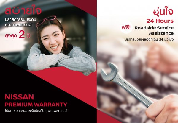 บริการช่วยเหลือรถเสียฉุกเฉินฟรีจากนิสสัน พร้อมมอบสิทธิประโยชน์แก่ลูกค้าที่ใช้งานรถยนต์อายุเกิน 3 ปีที่ไม่อยู่ในระยะประกัน ให้ได้รับความช่วยเหลือรถเสียฉุกเฉินตลอด 24 ชั่วโมงได้อย่างต่อเนื่อง เพียงนำรถยนต์นิสสันเข้ารับการตรวจเช็คและบำรุงรักษาตามระยะเวลาที่ศูนย์บริการนิสสันทุกแห่งทั่วประเทศ เป็นประจำ ทุก 6เดือน โดยนิสสันเป็นบริษัทยานยนต์แห่งแรกในประเทศไทยที่ให้บริการนี้ ส่วนลูกค้ารถใหม่นิสสันทุกคันได้รับสิทธิ์การบริการฯ นี้ เป็นเวลา 3 ปี หรือ 100,000 กม. (แล้วแต่ระยะใดถึงก่อน)