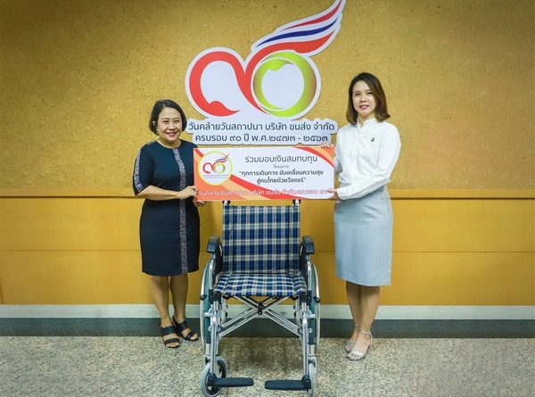 บริษัท บริดจสโตนเซลส์ (ประเทศไทย) จำกัด นำโดย คุณนิสิตา ศิรธรานนท์ (ขวา) ผู้จัดการฝ่ายการตลาดผลิตภัณฑ์ยางรถยนต์เพื่อการพาณิชย์ มอบเงินสมทบทุนแก่บริษัท ขนส่ง จำกัด (บขส.) ภายใต้โครงการ “ทุกการเดินทางขับเคลื่อนความสุข สู่คนไทยด้วยวีลแชร์” โดยคุณระพิพรรณ วรรณพินทุ (ซ้าย) ผู้ช่วยกรรมการผู้จัดการใหญ่ สำนักอำนวยการ เป็นผู้รับมอบ เพื่อนำเงินมอบให้แก่มูลนิธิพัฒนาคนพิการไทยจัดซื้อวีลแชร์แก่ผู้ด้อยโอกาสที่มีปัญหาทางการเคลื่อนไหว ได้แก่ คนพิการ ผู้สูงอายุ ผู้ป่วยที่จำเป็นต้องใช้วีลแชร์ ซึ่งจัดขึ้นเนื่องในโอกาสวันคล้ายวันสถาปนา บริษัท ขนส่ง จำกัด ครบรอบปีที่ 90 ณ อาคารสถานีขนส่งผู้โดยสารกรุงเทพฯ (จตุจักร) กรุงเทพฯ