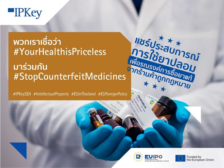 ไอพี คีย์ เซาท์อีสต์เอเชีย (IP Key South-East Asia) ซึ่งเป็นโครงการที่ได้รับเงินทุนสนับสนุนจากสหภาพยุโรป เชื่อว่าสุขภาพของทุกคนเป็นสิ่งที่ประเมินค่ามิได้ จึงเปิดตัวแคมเปญออนไลน์ #YourHealthisPriceless เพื่อสร้างความตระหนักรู้ถึงอันตรายที่เกิดการใช้ยาปลอมและผลิตภัณฑ์เพื่อสุขภาพปลอม โดยให้ผู้บริโภคร่วมแบ่งปันประสบการณ์การใช้ผลิตภัณฑ์ยาปลอมผ่านสื่อสังคมออนไลน์