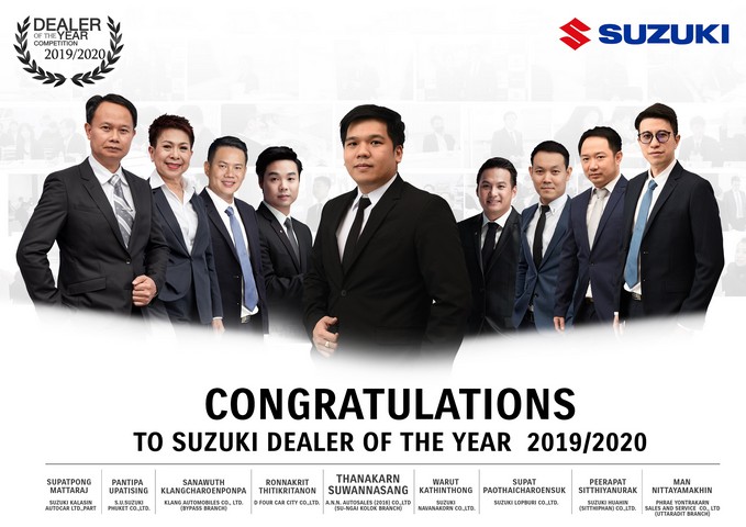 ในปีนี้ ซูซูกิ มอเตอร์ (ประเทศไทย) จึงยังตอกย้ำถึงการให้ความสำคัญต่อการพัฒนางานบริการของผู้จำหน่ายทั่วประเทศ ไม่ใช่เพียงแค่ต้องการให้ธุรกิจเติบโตไปพร้อมกันเท่านั้น แต่ยังเป็นการสร้างความเชื่อมั่นให้แก่ผู้บริโภคและลูกค้าของซูซูกิว่าธุรกิจของซูซูกิจะสามารถก้าวไปข้างหน้าและอยู่คู่คนไทยได้อย่างยั่งยืน โดยการจัดการแข่งขันการจัดการแข่งขันผู้จำหน่ายยอดเยี่ยมประจำปี 2562/2563 (Best Dealer Award 2019/2020) ถูกกำหนดขึ้นภายใต้หัวข้อ การบริหารจัดการทรัพยากรบุคคลในองค์กรของผู้จำหน่าย เพื่อสร้างสิ่งแวดล้อมการทำงานร่วมกันของแต่ละภาคส่วนอย่างมีประสิทธิภาภและยั่งยืน