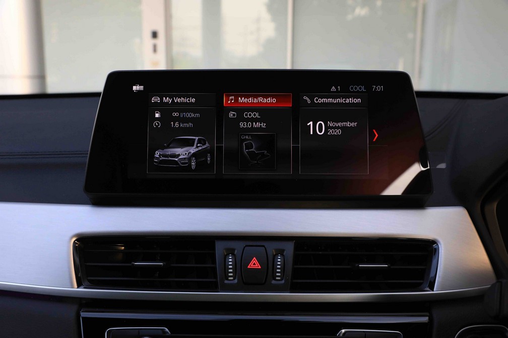มาตรฐานและคุณภาพอันเหนือชั้นของบีเอ็มดับเบิลยู X1 เด่นชัดด้วยสีของแผงคอนโซลแบบใหม่ที่ตัดกันอย่างมีสไตล์ ด้วยสีดำบริเวณแถบคอนโซลด้านบนและส่วนล่างในโทนสีเดียวกับสีเครื่องหนังในห้องโดยสาร ส่วนจอ Control Display ขนาด 8.8 นิ้ว (10.25 นิ้วในรุ่น xLine และ M Sport) สามารถควบคุมผ่านระบบ iDrive ระบบการสั่งงานด้วยเสียง หรือระบบสัมผัสได้ตามความถนัดของผู้ขับขี่