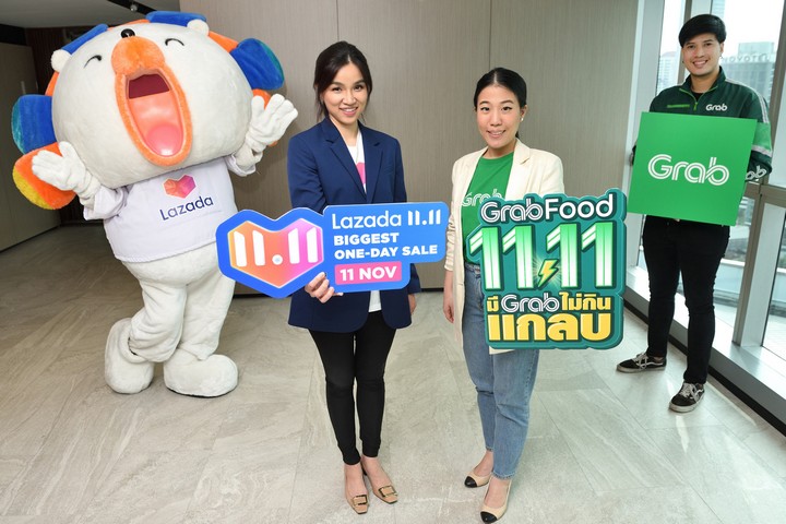แกร็บ ประเทศไทย ผู้นำซูเปอร์แอปในภูมิภาคเอเชียตะวันออกเฉียงใต้ จับมือ ลาซาด้า จำกัด ประเทศไทย ผู้นำแพลตฟอร์มอีคอมเมิร์ซแห่งเอเชียตะวันออกเฉียงใต้ ผนึกกำลังส่งมหกรรมแคมเปญ 11.11 ที่ใหญ่ที่สุดแห่งปี 2563 ผ่านการทำโปรโมชั่นร่วม (Co-promotion) ระหว่าง 2 แพลตฟอร์มเพื่อส่งมอบประสบการณ์ความคุ้มค่าในทุกการใช้จ่ายให้แก่ฐานลูกค้า โดยมอบส่วนลดบริการ GrabPackage กว่า 90% บนแพลตฟอร์ม Lazada และคูปองส่วนลด 100 บาท เพื่อใช้เป็นส่วนลดในแคมเปญ Lazada 11.11 Biggest One-Day Sale เมื่อมียอดใช้บริการ GrabFood ครบ 150 บาท หรือบริการ JustGrab, GrabTaxi โดยไม่มีขั้นต่ำ