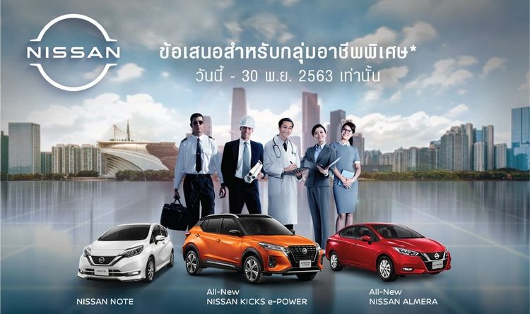 นิสสันพร้อมมอบข้อเสนอมากมาย สำหรับ นิสสัน คิกส์ อี-พาวเวอร์ ใหม่, นิสสัน อัลเมร่า ใหม่ และนิสสัน โน๊ต ด้วยสิทธิประโชน์สำหรับลูกค้ากลุ่มอาชีพพิเศษตามที่กำหนด โดยรถเอสยูวีและรถยนต์ที่นั่งส่วนบุคคลแต่ละรุ่นยังมาพร้อมกับเทคโนโลยีอัจฉริยะ นิสสัน อินเทลลิเจนท์ โมบิลิตี (Nissan Intelligent Mobility) ที่ตอบโจทย์ลูกค้าที่มีไลฟ์สไตล์ตามวิถีคนเมือง พร้อมรองรับความปลอดภัยขั้นสูงสุด โดยโครงการ “Smart SUV and Passenger Car Program” เริ่มแล้วจนถึง 30 พฤศจิกายน 2563 โดยมีจำนวนจำกัด และเป็นไปตามเงื่อนไขที่กำหนด
