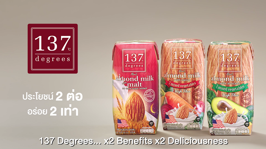 นมอัลมอนด์สูตรมอลต์ มีความพิเศษจากคุณสมบัติของมอลต์ ที่มีสารฮอร์ดินีนช่วยปรับอารมณ์ เพิ่มประสิทธิทางปัญญาและการกีฬา ช่วยให้หลับสบายเวลากลางคืนและตื่นอย่างสดชื่นในเวลาเช้า, นมอัลมอนด์สูตรแครอทและผักรวม รสชาติอร่อย มีคุณค่าอาหารและใยอาหารสูงจากผักถึง 7  ชนิด ช่วยให้อิ่มนาน  และนมอัลมอนด์สูตรอโวคาโดและผักรวม มีใยอาหารสูง ช่วยระบบขับถ่ายให้เป็นปรกติ  นอกจากนี้นม 137 ดีกรีทุกกล่องปราศจากแลคโตส กลูเต็น คอเลสเตอรอล น้ำตาลทราย และเกลือ จึงเป็นเครื่องดื่มที่อร่อย ปลอดภัย ให้คุณค่าทางอาหารที่เป็นประโยชน์ต่อร่างกาย เหมาะเป็นเครื่องดื่มสำหรับทุกเพศ ทุกวัย