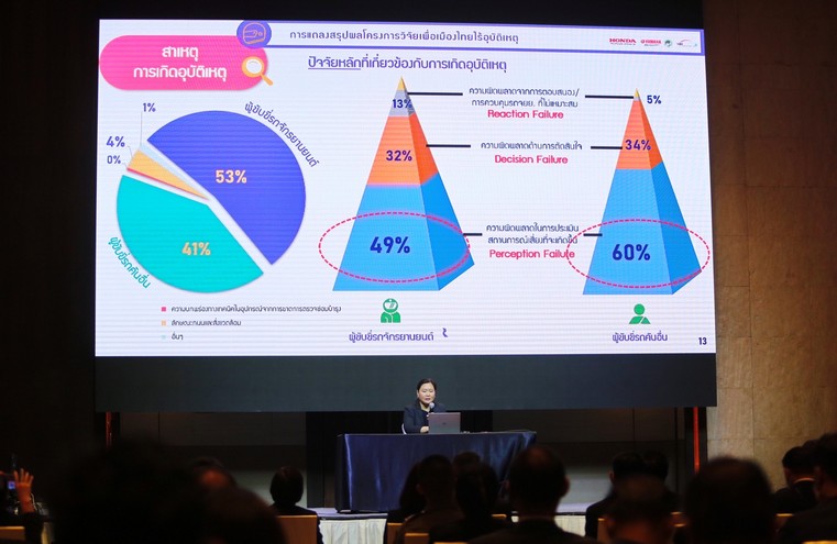 ฮอนด้า และ ยามาฮ่า ร่วมกับศูนย์วิจัยอุบัติเหตุแห่งประเทศไทย ภายใต้สถาบันเทคโนโลยีแห่งเอเชีย จัดแถลงสรุปผลการวิจัย “โครงการวิจัยเพื่อเมืองไทยไร้อุบัติเหตุ” จาก 1,000 กรณีศึกษา พบสาเหตุหลักเกิดจากความผิดพลาดในการประเมินสถานการณ์ก่อนการเกิดอุบัติเหตุ การเสียชีวิตส่วนใหญ่เกิดจากการชนตัดหน้า และกลุ่มวัยรุ่นประสบอุบัติเหตุมากที่สุด พร้อมเปิดเวทีเสวนาหัวข้อ “ทิศทางและมุมมองการลดอุบัติเหตุในอนาคต” หวังผนึกกำลังสานต่อเพื่อร่วมลดอุบัติเหตุอย่างยั่งยืน