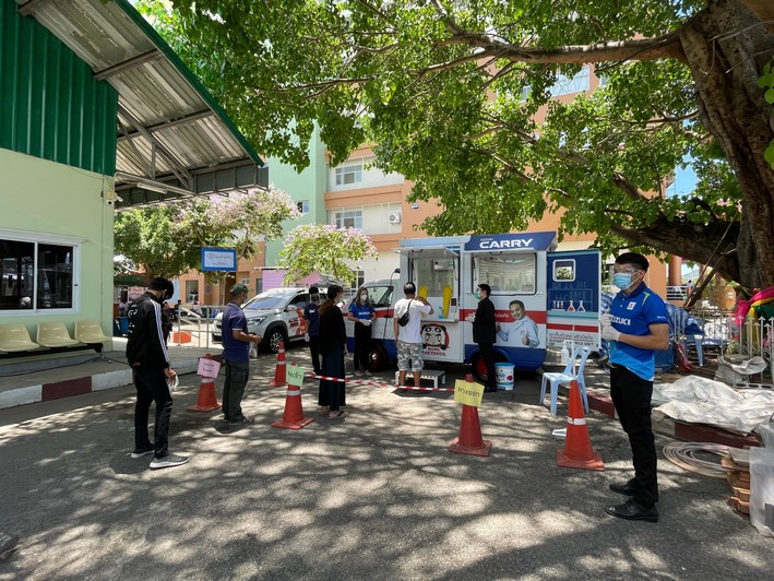 โดยล่าสุดทาง หมอแล็บแพนด้า “ทนพ.ภาคภูมิ เดชหัสดิน” ได้รับการติดต่อจากโรงพยาบาลพหลหลพยุหเสนา จังหวัดกาญจนบุรี ขอให้นำรถ SUZUKI CARRY Biosafety Mobile Unit ออกให้บริการประชาชนเพื่อตรวจหาเชื้อโควิด-19 ในเชิงรุกแบบเคลื่อนที่และไม่มีค่าใช้จ่าย เพื่อแบ่งเบาภาระพร้อมลดความแออัดของประชาชนที่เข้าไปใช้บริการในโรงพยาบาล ตั้งแต่วันที่ 19 -23 เมษายน 2564 ซึ่งผู้จำหน่ายรถยนต์ซูซูกิโดย บริษัท ซูซูกิกาญจนบุรี จำกัด ได้เข้าร่วมสนับสนุนการปฏิบัติงานของเจ้าหน้าที่ในครั้งนี้ตลอดระยะเวลาการให้บริการของหมอแล็บแพนด้า ในพื้นที่ดังกล่าว