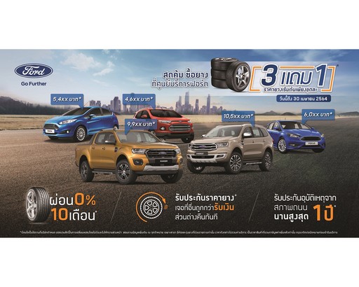 นอกจากนี้ ฟอร์ดพร้อมมอบข้อเสนอสุดคุ้ม ซื้อยาง 3 เส้นแถมฟรี 1 เส้น สำหรับยางยี่ห้อที่เข้าร่วมรายการ ตั้งแต่วันนี้ถึงวันที่ 30 เมษายน 2564 เท่านั้น