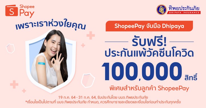 ในสถานการณ์การแพร่ระบาดของโควิด-19 อีกหนึ่งหนทางในการช่วยป้องกันและบรรเทาการแพร่ระบาดได้ คือ การฉีดวัคซีนในกลุ่มประชากรชาวไทยให้ได้เยอะที่สุด ‘ShopeePay (ช้อปปี้เพย์)’ ผู้ให้บริการด้านการชำระเงินผ่าน Mobile Wallet ชั้นนำจาก SeaMoney จึงได้ร่วมมือกับ ‘ทิพยประกันภัย’ ส่งความห่วงใยแก่ผู้ใช้งาน ShopeePay ด้วยการมอบประกันภัยคุ้มครองการแพ้วัคซีนโควิด-19 ฟรี! 1 แสนสิทธิ์ พร้อมวงเงินคุ้มครองสูงสุดถึง 1 แสนบาท