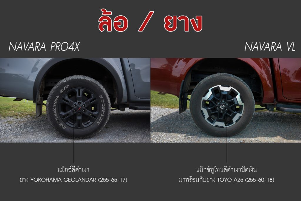อีกจุดที่เด่นไม่แพ้กันคือ ล้ออัลลอยแบบ Off-Road โดย PRO4X จะมาพร้อมกับ Yokohama ขณะที่ VL 4X4 มาพร้อมกับยาง TOYO