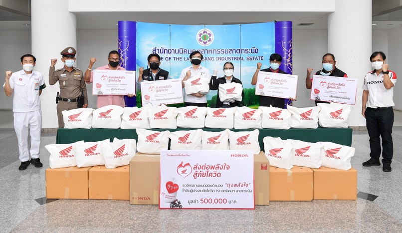 รถจักรยานยนต์ฮอนด้า ส่งมอบความช่วยเหลือภายใต้แนวคิด “ส่งต่อพลังใจสู้ภัยโควิด” ด้วย “ถุงพลังใจ” จำนวน 2,000 ถุง มูลค่ารวมกว่า 500,000 บาท ให้กับสำนักงานเขตลาดกระบัง นิคมอุตสาหกรรมลาดกระบัง ศูนย์บริการสาธารณสุข 46 สถานีตำรวจนครบาลฉลองกรุง และผู้ประสบภัยในพื้นที่ 9 ชุมชน รอบนิคมอุตสาหกรรมลาดกระบัง ที่ได้รับผลกระทบจากการแพร่ระบาดของเชื้อโควิด-19 ประกอบไปด้วยชุมชนพัฒนาทิพพาวาส ชุมชนลำพุทธา ชุมชนบึงบัว ชุมชนริมคลองลำปลาทิว ชุมชนสุทธาวาส ชุมชนทิวไผ่พัฒนา ชุมชนมิตรสัมพันธ์ ชุมชนวัดสุทธาโภชน์สุนทรอุปถัมป์ ชุมชมเลียบคลองมอญ