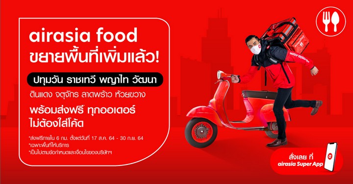 airasia food พร้อมมอบประสบการณ์ระดับซูเปอร์แอพ ขยายพื้นที่ให้บริการสำหรับลูกค้าในเขต พญาไท ราชเทวี ปทุมวัน และวัฒนา