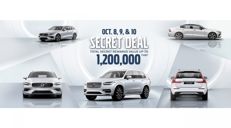 วอลโว่ คาร์ ประเทศไทย จัดโปรโมชั่นสุดพิเศษที่แฟน ๆ วอลโว่ต่างรอคอย “Volvo Secret Deal 2021” ให้คุณเลือกเป็นเจ้าของรถยนต์วอลโว่สุดพรีเมียมในรุ่น S60, V60, XC60 และ XC90 ได้ง่ายขึ้นกับราคาพิเศษสุดที่คุณไม่เคยพบมาก่อน พร้อมรับสิทธิ์ลุ้นรับรางวัล Secret Rewards มูลค่ารวม 1,200,000 บาท* ตั้งแต่วันที่ 8-10 ตุลาคม 2564 นี้ที่โชว์รูมรถยนต์วอลโว่ทุกแห่งและสามารถจองซื้อรถยนต์ผ่านเว็บไซต์วอลโว่ ลูกค้าที่สนใจสามารถคลิกเพื่อดูราคาของรถยนต์แต่ละรุ่น ข้อเสนอพิเศษและเงื่อนไขต่าง ๆ ได้ที่เว็บไซต์ www.volvocars.com/th หรือติดต่อสอบถามได้ที่ศูนย์บริการลูกค้าวอลโว่ 0-2161-4144