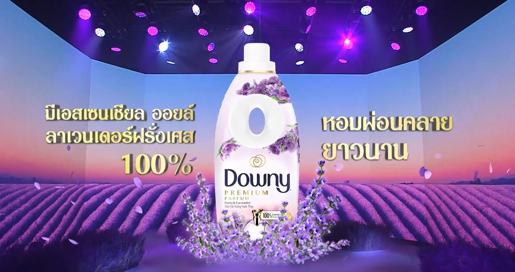 สำหรับการเปิดตัวผลิตภัณฑ์ใหม่ น้ำยาปรับผ้านุ่ม ดาวน์นี่ พรีเมียม พาร์ฟูม กลิ่นสวนลาเวนเดอร์ฝรั่งเศส ในครั้งนี้ ดาวน์นี่ สร้างความตื่นตาตื่นใจให้กับผู้ชมทางบ้านด้วยการเนรมิตบรรยากาศทุ่งลาเวนเดอร์จากโพรวองซ์ ประเทศฝรั่งเศสดินแดนในฝันอันงดงามที่สุดของฝรั่งเศสตอนใต้ท่ามกลางทุ่งลาเวนเดอร์บานสะพรั่งในฤดูร้อน พร้อมยกระดับความหอมให้ทะลุผ่านหน้าจอด้วยการผสานกับเทคโนโลยี AR (Augmented reality) เผยให้เห็นซีนเปิดตัวผลิตภัณฑ์ใหม่สุดอลังกับซีนแอนิเมชั่นหยด “เอสเซนเชียล ออยล์ธรรมชาติ” และกลีบดอกลาเวนเดอร์ ตอกย้ำความเป็นผู้สร้างสรรค์นวัตกรรมความหอมที่ไม่เคยหยุดพัฒนา