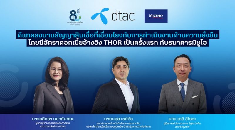 ดีแทค ลงนามสัญญาสินเชื่อโดยมีอัตราดอกเบี้ยอ้างอิง THOR เป็นครั้งแรก กับธนาคารมิซูโฮ