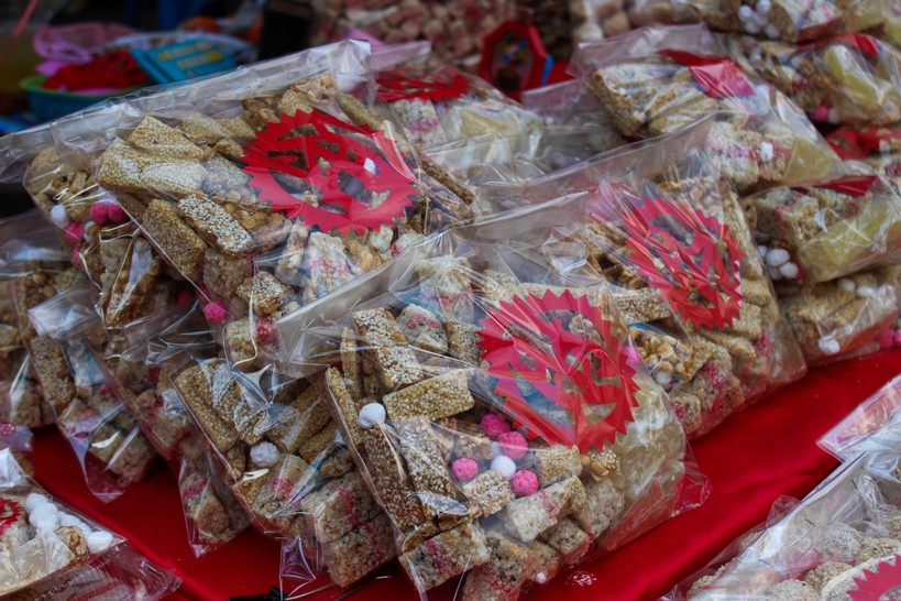 เดินไปจนสุดซอยเลี้ยวขวากลับมายังถนนเจริญกรุง ข้ามถนนเดินย้อนกลับขึ้นมาทางสถานีรถไฟฟ้าจะเห็นซอยเล็ก ๆ ที่อยู่ติดกับสถานีแออัดไปด้วยผู้คนเดินเข้าเดินออก ตรงนี้คือตรอกอิสรานุภาพ มีร้านค้าที่เปิดขายแน่นซอยเกือบตลอดทั้งวัน ตรงนี้จะเป็นแหล่งขายอาหารการกินของชาวจีนที่คึกคักที่สุด ไม่ว่าจะเป็นของแห้ง ของสด ผัก ผลไม้ หมูย่าง เป็ดย่าง บะหมี่หยก บะหมี่เหลือง โกยซีหมี่ แต่ที่เห็นเยอะมาก ๆ คือ “ขนมจันอับ” ซึ่งเป็นขนมมงคลสำหรับวันตรุษจีน และยังมีขนมเทียน ขนมเข่ง กุ่ยช่าย ซาลาเปา ซิ่วท้อ ถ้วยฟู ขนมเปี๊ยะ ขนมโก๋ รวมไปถึงร้านขายชาที่มีตั้งแต่ชาอูหลง ชามะลิ ไปจนถึงชาดอกไม้ ชากุหลาบ เอาเป็นว่าตลอดทั้งซอยเห็นอะไรก็น่าซื้อน่าทาน ยิ่งช่วงนี้ใกล้เทศกาลตรุษจีนด้วยแล้ว เราจะเห็นผู้คนแวะมาซื้อหาของสำหรับไหว้เจ้ากันเยอะมาก บ้างก็หิ้วกระดาษเงินกระดาษทอง บ้างก็แวะซื้อของสด ของแห้ง ละลานตาไปหมดเลย