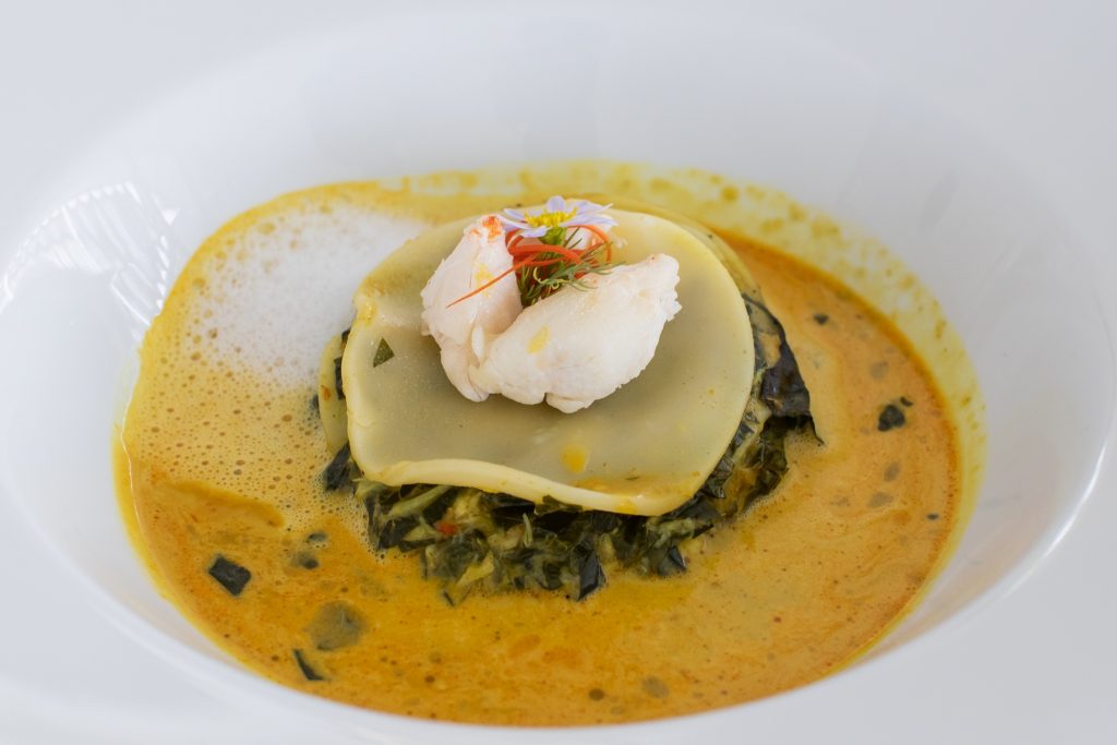 “ลาซานญาเนื้อปูใส่ใบชะพลู” เป็นการผสมผสานระหว่างอาหารตะวันตกและอาหารไทยได้อย่างลงตัว โดยการนำแผ่นลาซานญามาวางสลับกับใบชะพลูเป็นชั้น ๆ (นับได้ 3 ชั้น) ราดด้วยน้ำแกงที่ให้รสชาติเหมือนขนมจีนน้ำยาที่เราคุ้นชิน กับเนื้อปูคำโต ๆ ใครไม่อิ่มเจอจานนี้อิ่มแน่นอน