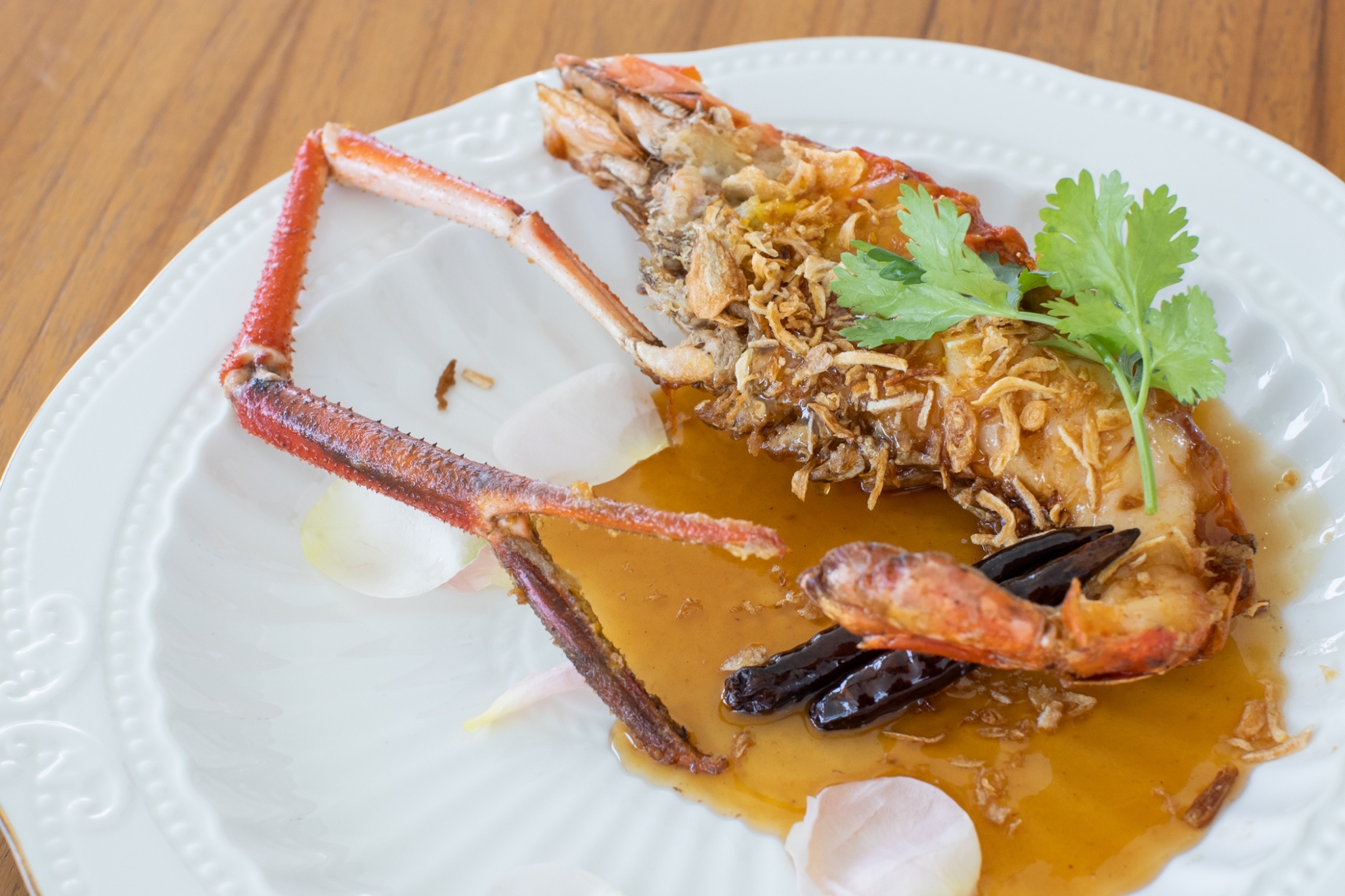 “กุ้งแม่น้ำซอสมะขาม” หรือเราเรียกกันว่า “กุ้งเผาราดน้ำปลาหวาน” ต้องบอกเลยว่าถ้าใครที่ชอบทานน้ำปลาหวาน รสชาติจานนี้เข้มข้นมากกกก ยกเซ็ตน้ำปลาหวานมาครบเลย ทั้งพริกแห้งและผักชี