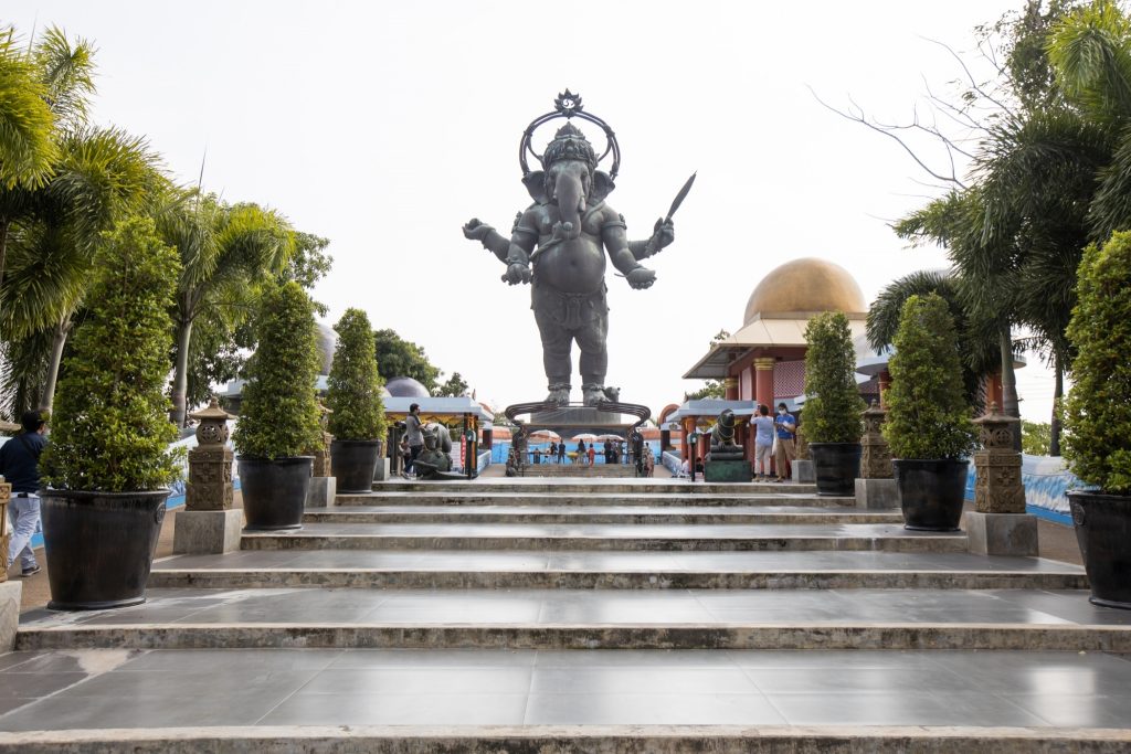 สถานที่ท่องเที่ยวอีกแห่งของเมืองแปดริ้วที่เราแวะไปเยี่ยมชมคือ “อุทยานพระพิฆเนศ องค์ยืน” ตั้งตระหง่านหันหน้าออกแม่น้ำบางปะกง โดยพระพิฆเนศองค์นี้มีชื่อเรียกว่า “พระพิฆเนศปางยืน องค์สำริด สำเร็จ สมปรารถนา” องค์ใหญ่มากจริง ๆ สามารถมองเห็นได้แต่ไกล ภายในอุทยานแห่งนี้ มีองค์เทพให้กราบไหว้สักการะ ขอพร มากมาย เชื่อกันอีกว่า ใครที่ได้มาไหว้ ขอพรพระพิฆเนศ ปางยืน ณ ที่แห่งนี้ จะทำให้ชีวิตประสบความสำเร็จ สมปรารถนา ตามชื่อขององค์ท่าน