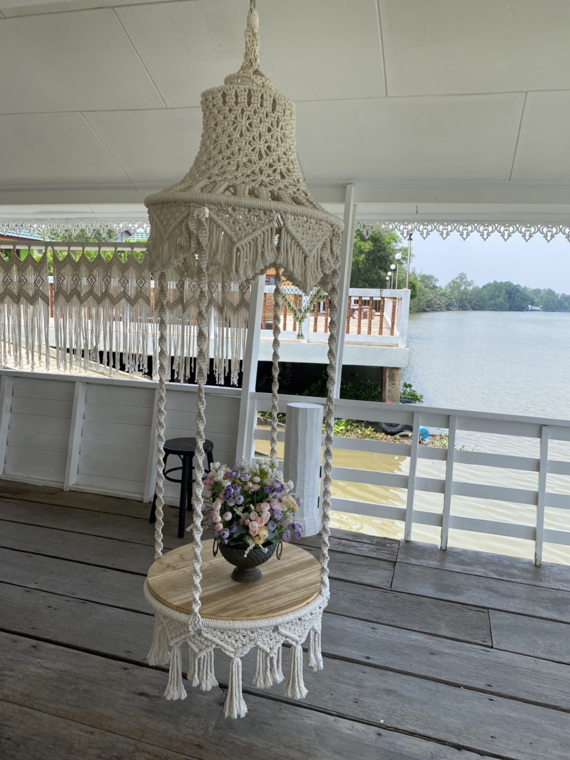 อ้อ !! ลืมบอกไปว่าดอกไม้ที่นำมาประกอบอาหารในทุกเมนู เป็นดอกไม้ที่ทางร้านปลูกเอง รับรองว่าปลอดสารพิษแน่นอน อิ่มแล้วก็เดินเล่นเพลิน ๆ ชมทัศนียภาพริมแม่น้ำ วิถีธรรมชาติ พร้อมกับเก็บบรรยากาศรอบร้านมาฝากกัน