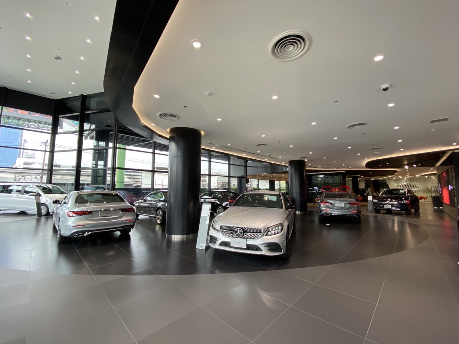 ภายในโชว์รูมชั้น 1-3 พื้นที่รวมประมาณ 6,000 ตร.ม. เป็นโชว์รูม 3 มิติ ที่มีโถงสูงกว่า 15 เมตร เป็นพื้นที่สำหรับจัดแสดงรถยนต์เมอร์เซเดส-เบนซ์ ของทุกซับแบรนด์ ได้มากกว่า 150 คัน เชื่อมต่อกัน 3 ชั้น ด้วยบันไดเลื่อน ซึ่งมีคอนเซ็ปต์และแรงบัลดาลใจจาก Mercedes Welt, Berlin ประเทศเยอรมัน โดยเป็นผลงาน การออกแบบจาก “Gensler” บริษัทออกแบบสถาปัตยกรรมชื่อดังระดับโลก จากประเทศสหรัฐอเมริกา ที่มีผลงานออกแบบให้ลูกค้าทั่วโลกมากกว่า 100 ประเทศ