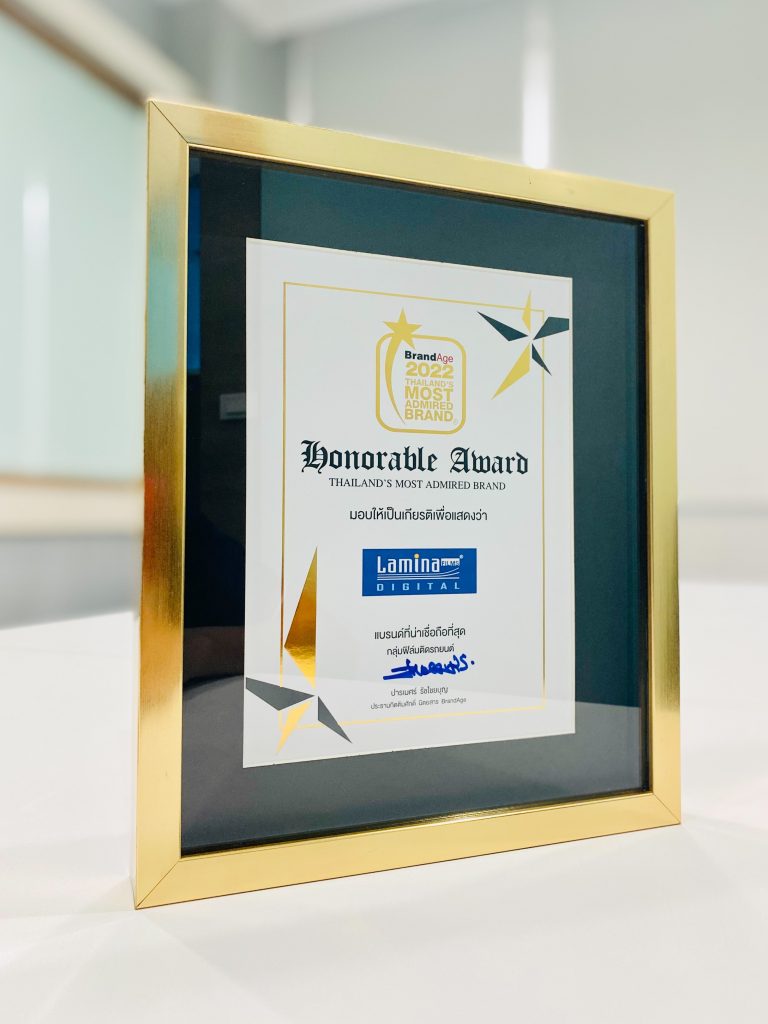 “ลามิน่าฟิล์ม” ตอกย้ำความเป็นแบรนด์ฟิล์มกรองแสงรถยนต์อันดับ 1 ในใจผู้บริโภค ได้รับรางวัล Thailand’s Most Admired Brand 2022 หรือรางวัลตราสินค้าที่มีความน่าเชื่อถือสูงสุดในประเทศไทย ต่อเนื่องเป็นปีที่ 8 จากผลสำรวจผู้ใช้งานจริง จัดโดยนิตยสารแบรนด์เอจ (BrandAge) จากกระบวนการทำวิจัยที่ผ่านการกลั่นกรองอย่างตรงไปตรงมาจากคณะทำงานในทุกภาคส่วน