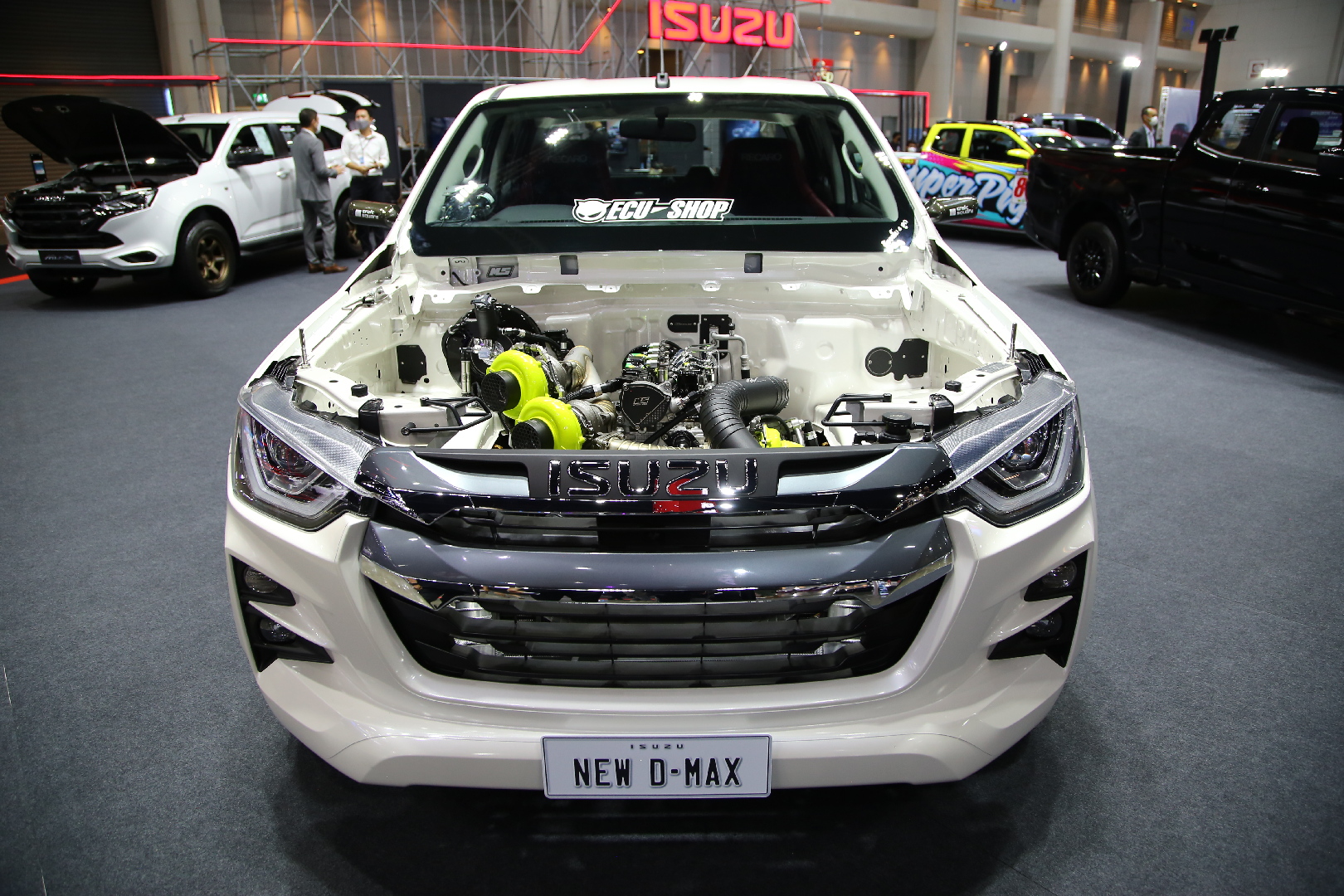 - อีซูซุดีแมคซ์ เครื่องยนต์ 3.0 Ddi Blue Power สปอร์ตปิกอัพตัวแรง จากรายการแข่งขันรถยนต์ทางเรียบ “ISUZU ONE MAKE RACE 2022” ที่ได้รับความนิยมจนจัดต่อเนื่องเป็นปีที่ 13 ตกแต่งภายนอกดีไซน์สปอร์ตรอบคันด้วย AEROPART จาก AKANA แรงเต็มพิกัดด้วยขุมพลัง 4JJ3 ติดตั้งกล่องพ่วงเพิ่มความแรงจาก ECU Shop เสริมชุดคลัชต์รถแข่งจาก BRC เฟืองท้ายแบบ LIMITED SLIP 2 WAY ให้กำลังสูงสุด 270 แรงม้า แรงบิดสูงสุด 670 นิวตัน-เมตร เสริมช่วงล่างด้วยโช้คสปริงปรับแรงดัน (Sub Tank) จาก Hot Bits เพิ่มขีดความสามารถในการเกาะถนนด้วยล้อ Lenso RD1 ขนาด 9×17 นิ้ว ยาง TOYOTIRES R888R ขนาด 255/40 R17 ท่อสูตร NITTO Header & Turbo ห้องโดยสารเสริมมาตรฐานความปลอดภัยตามแบบ FIA ด้วย Roll Cage เบาะรถแข่งและชุดเข็มขัดนิรภัยแบบ 6 จุด Sparco แป้นเหยียบเบรก พวงมาลัย MOMO พร้อมสวิตช์ตัดไฟ, เกจ์วัดบูธ และถังดับเพลิง