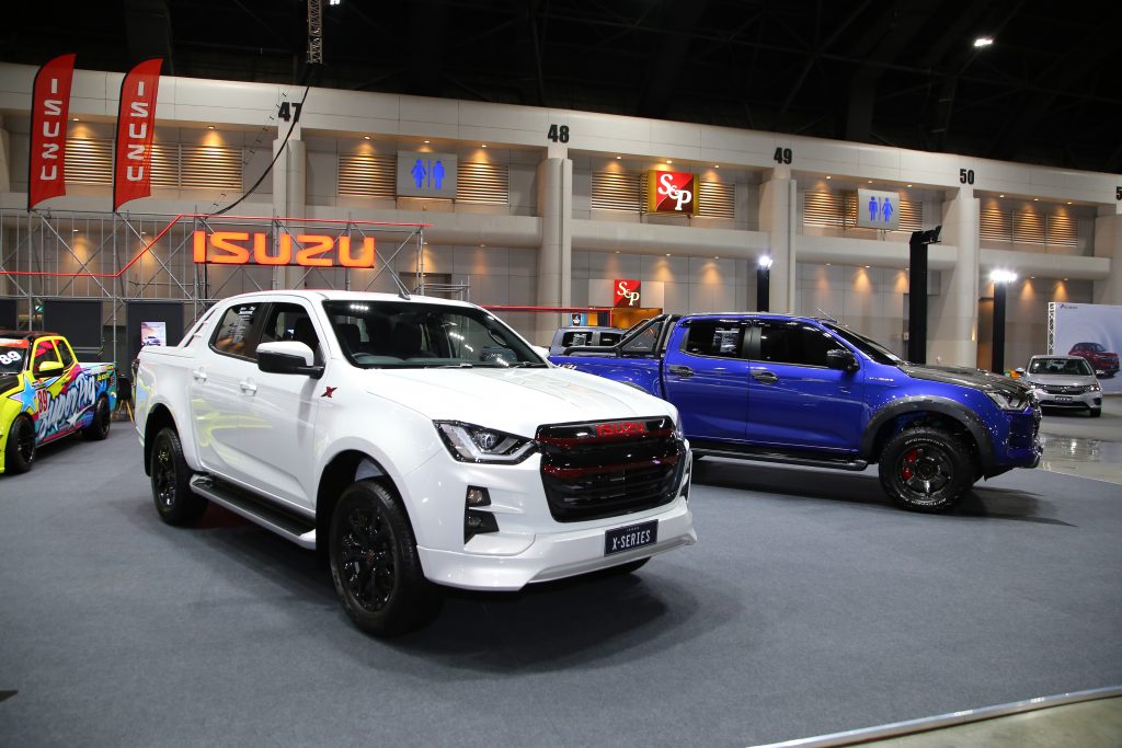 - “ใหม่! อีซูซุ เอ็กซ์-ซีรี่ส์” (Infinite X-Life) ขีดสุดแห่งความเร้าใจสไตล์สปอร์ตเร่งแรง แซงเกินต้านด้วยขุมพลังสุดประหยัด อีซูซุ 9 ดีดีไอ บลูเพาเวอร์ Gen 2 รุ่น RZ4E-TC ให้กำลังสูงสุด 150 แรงม้า ที่ 3,600 รอบ/นาที แรงบิดสูงสุด 350 นิวตัน–เมตร ที่ 1,800–2,600 รอบ/นาที ขับสนุก สั่งได้ทุกอัตราเร่งกับชุดเกียร์ธรรมดาและอัตโนมัติ 6 สปีด (รายละเอียดตามแต่ละรุ่น) มั่นใจทุกการเข้าโค้งกับ ช่วงล่างด้านหน้าแบบอิสระปีกนก 2 ชั้นพร้อมคอยล์สปริง และตำแหน่งจุดยึด ปลอดภัยทุกการตอบโจทย์ของไลฟ์สไตล์ด้วยเทคโนโลยีด้านความปลอดภัยอย่างเต็มระบบ นำมาจัดแสดงในงาน รวม 2 รุ่น ได้แก่